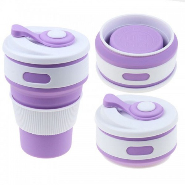 Склянка Силіконова Складний Collapsible Coffee Cup Чашка 350Мл Бузковий