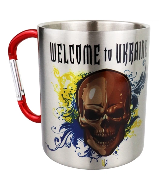 Кружка металева з червоним карабіном сублімація Welcome to Ukraine 300 мл