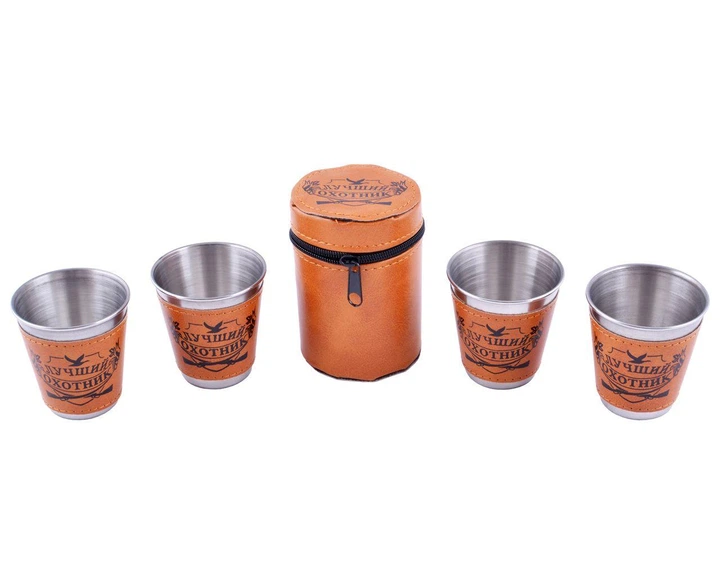 Чарки з нержавіючої сталі в шкіряному чохлі 4 шт Гранд Презент Україна 75 мл
