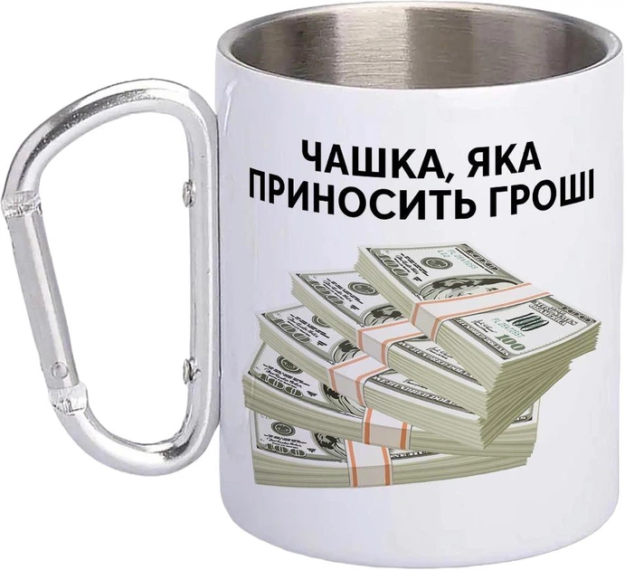 Кружка металева з карабіном Чашка яка приносить гроші 300 мл Біла
