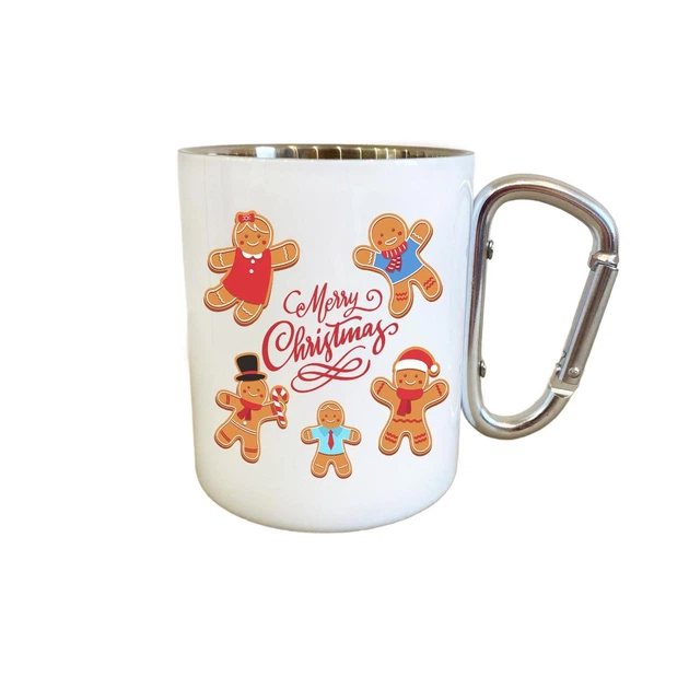 Кружка металева з карабіном Merry Christmas з пряниками 300 мл Біла