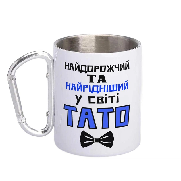 Кружка металева з карабіном Наидорожчии у світі Тато 300 мл Біла