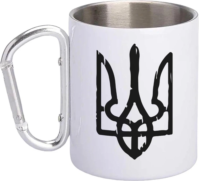 Кружка металева з карабіном Тризуб 300 мл Біла