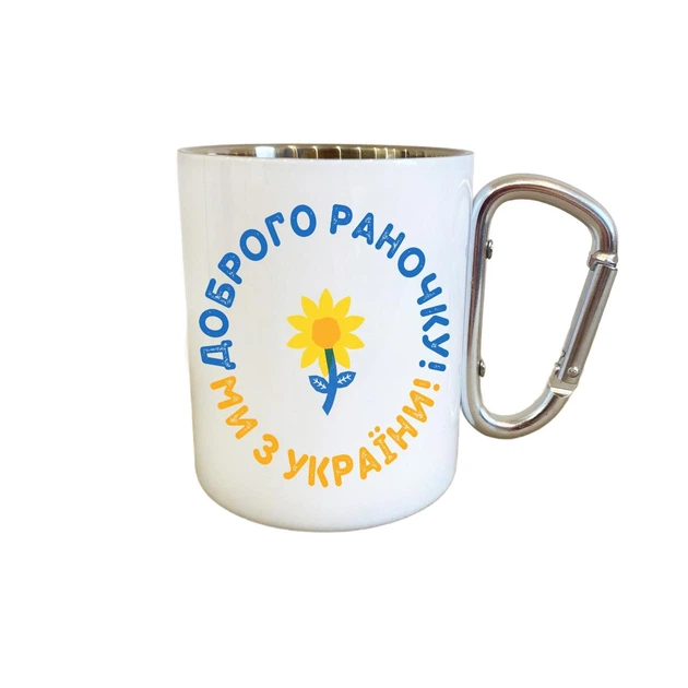 Кружка металева з карабіном Доброго раночку ми з України 2 300 мл Біла