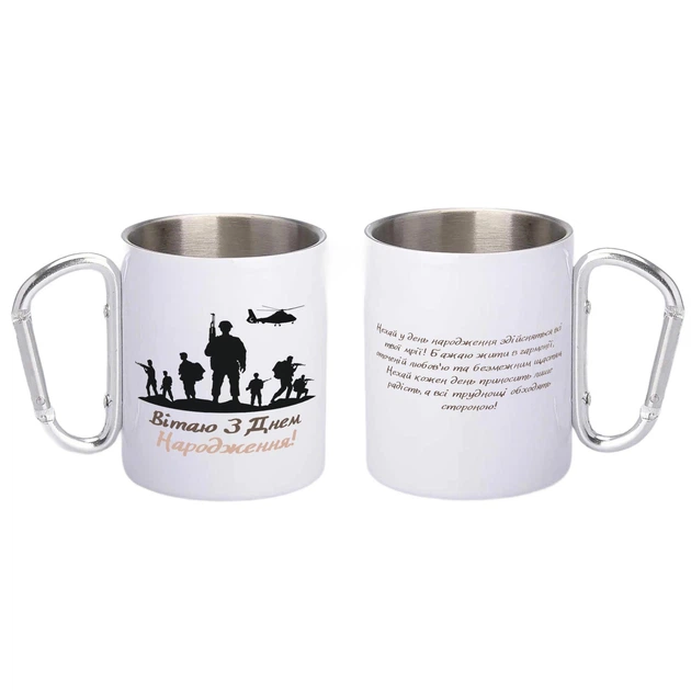 Кружка металева з карабіном Вітаю З Днем Народження ЗСУ 300 мл Біла