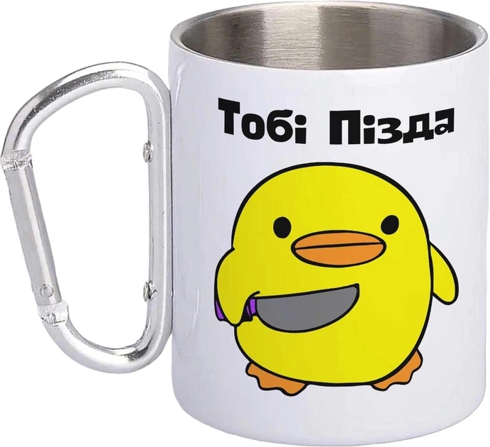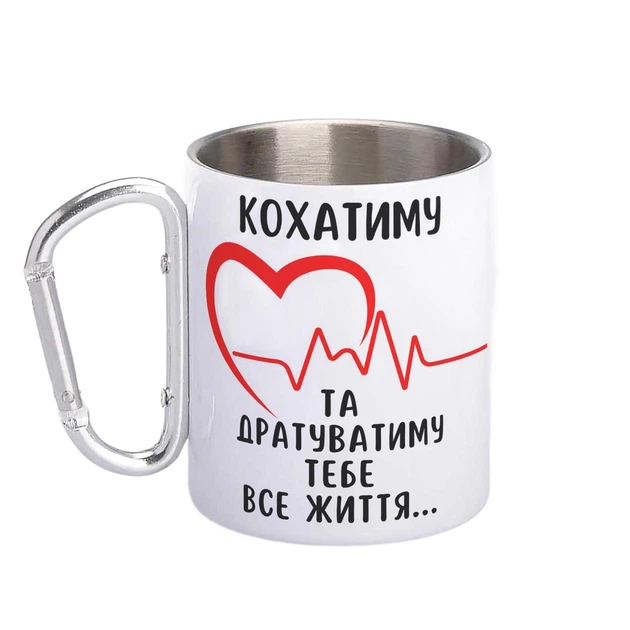 Кружка металева з карабіном Кохатиму та дратуватиму 300 мл Біла