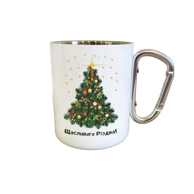 Кружка металева з карабіном Merry Christmas ялинка 300 мл Біла