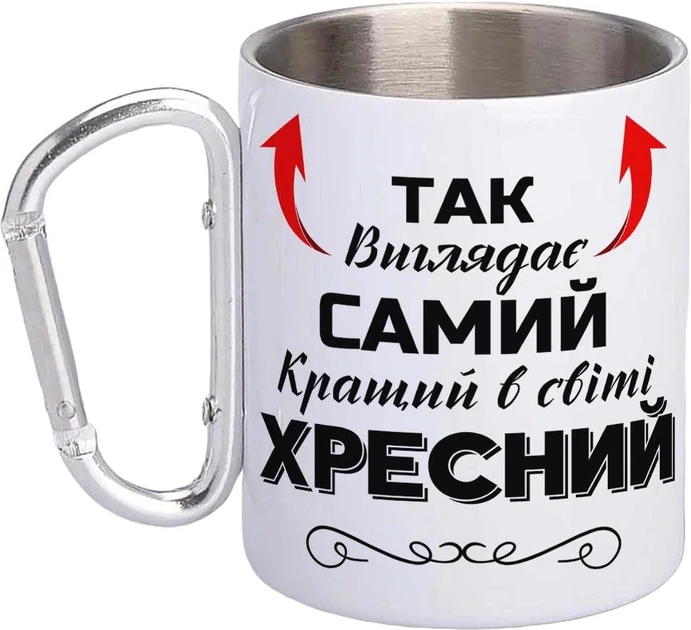 Кружка металева з карабіном Так виглядає самии кращии Хреснии 300 мл Біла