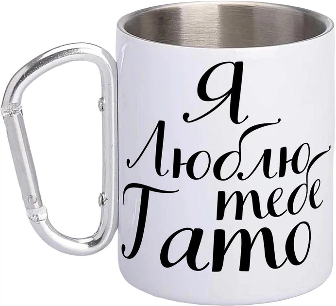 Кружка металева з карабіном Я Люблю тебе Тато 300 мл Біла