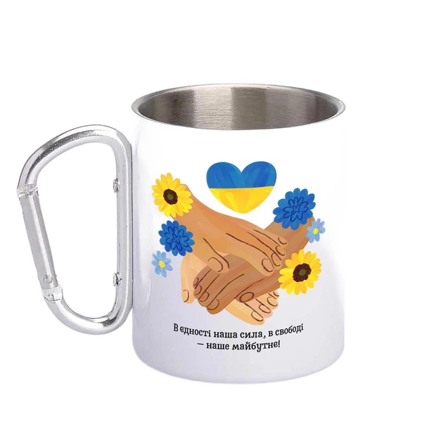 Кружка металева з карабіном В єдності наша сила 300 мл Біла