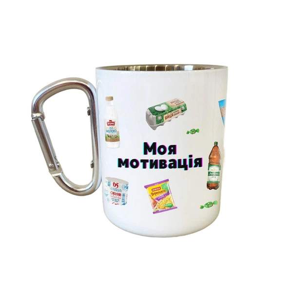 Кружка металева з карабіном Моя мотивація 300 мл Біла