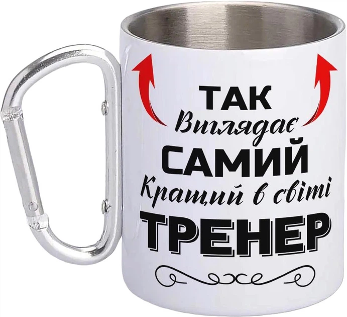 Кружка металева з карабіном Так виглядає самии кращии Тренер 300 мл Біла