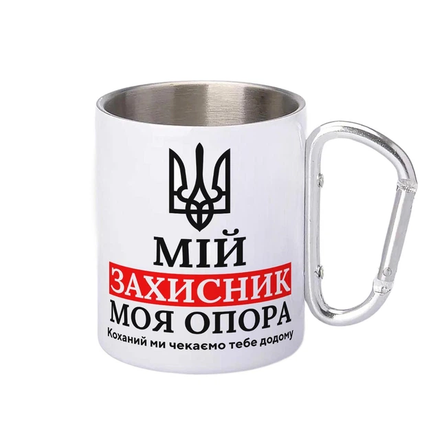 Кружка металева з карабіном Міи захисник 2 300 мл Біла