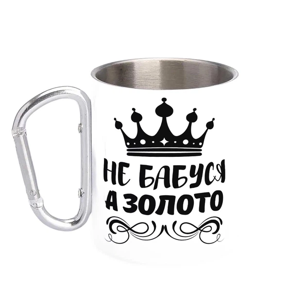 Кружка металева з карабіном Не Бабуся а Золото 300 мл Біла