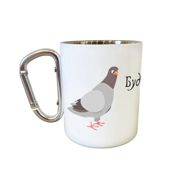 Кружка металева з карабіном Будь як Голуб 300 мл Біла