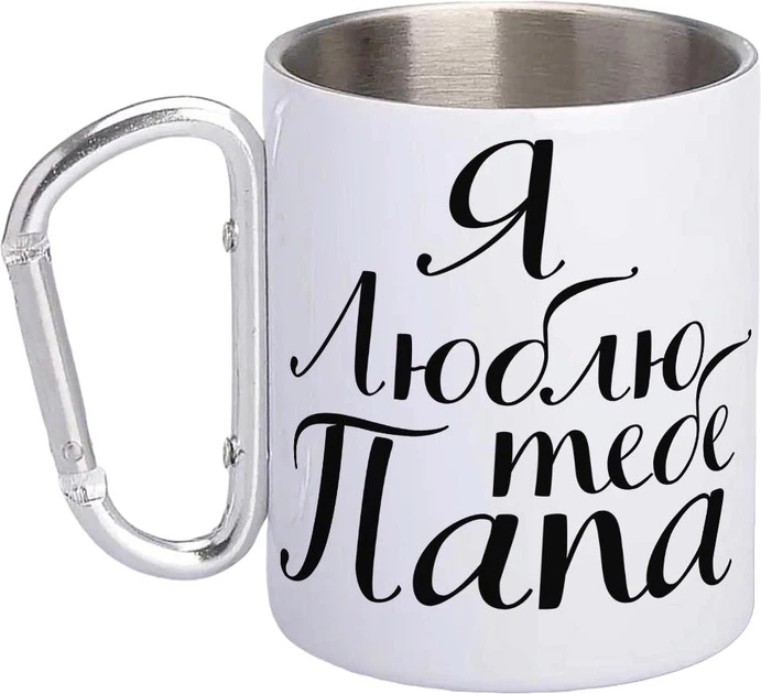 Кружка металева з карабіном Я Люблю тебе Папа 300 мл Біла