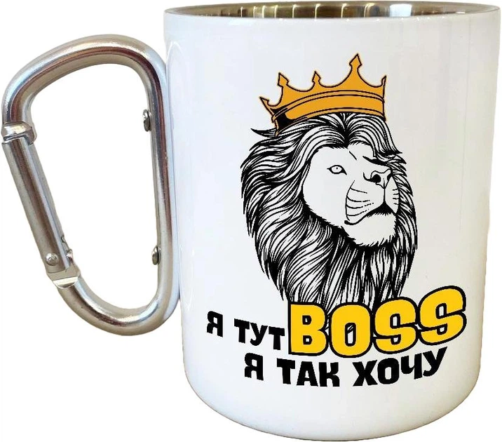 Кружка металева з карабіном Я тут Bos 300 мл Біла