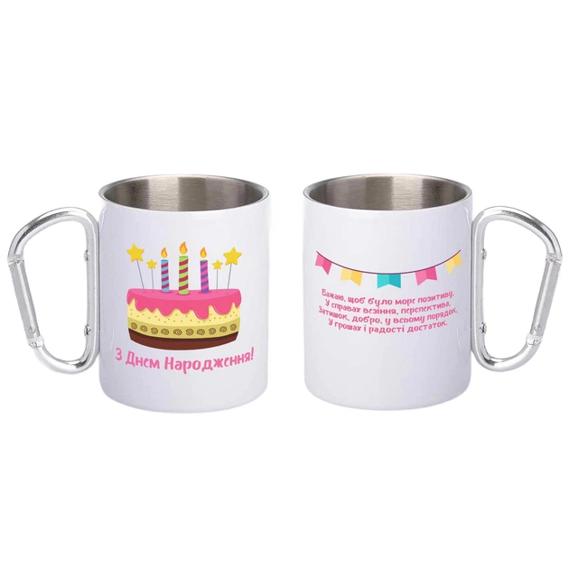 Кружка металева з карабіном З Днем Народження Тебе 2 300 мл Біла