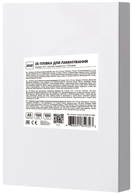 Плівка для ламінування 2E матова формат A5 100 шт (2E-FILM-A5-075M)