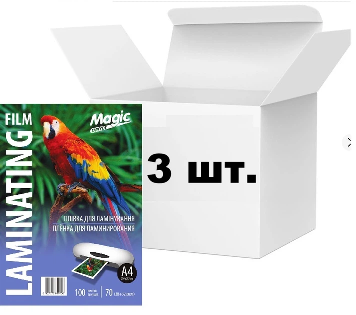Плівка для ламінування А4 70 мкм. Упаковка 300 л. (100 шт/уп.x 3 п.) Magic Плівка для ламінації А4 глянсова 70 мкм