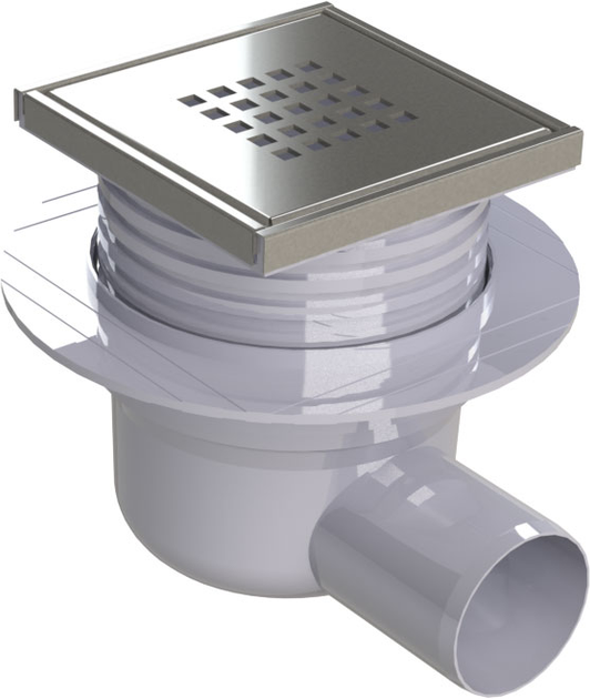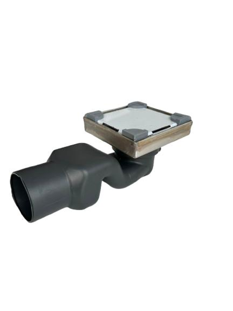 Трап з решіткою під плитку з нержавіючою решіткою і корпусом горизонтальний вихід D50, 10*10 см