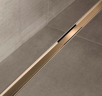 Підходить для облицювання плиткою на підлозі 10-35 мм. З покриттям проти відбитків. Дренажний канал підганяється по висоті, нахилу та відхилення. Із вбудованим ухилом. Дренажний канал із можливістю вкорочування. Матеріал: Нержавіюча сталь. PVD покриття, шампань, полірована рамка. Сумісний з монтажними комплектами CleanLine 20 та 60.