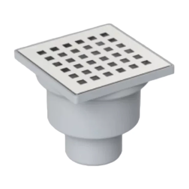 Трап для душа Drain Klepper 15х15 см, корпус- пластик, решітка- нержавіюча сталь, сухий затвір, вертикальний вихід 50 мм