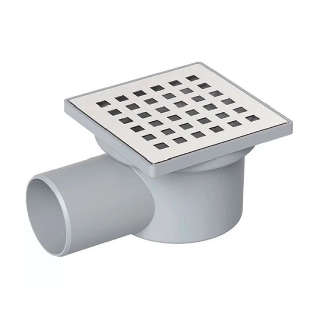 Трап для душа Drain Klepper 10х10 см, корпус- пластик, решітка- нержавіюча сталь, сухий затвір, вертикальний вихід 50 мм