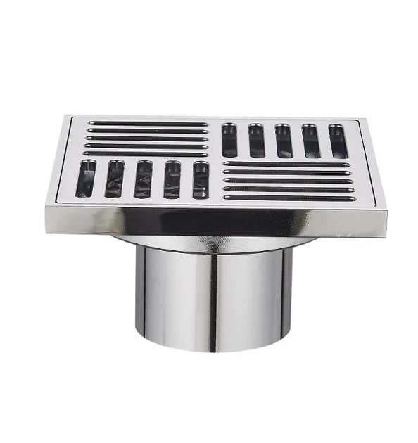 Трап для душу Koer FD10-100x100-180 сталевий з латуні 100*100*180 мм з прямим відведенням та решіткою (KR3413)