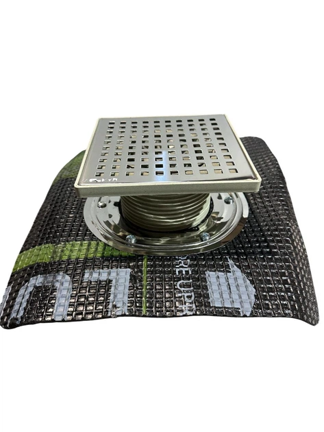 Трап для душу горизонтальний MERTINOKS 15х15 см D50 нержавіюча сталь