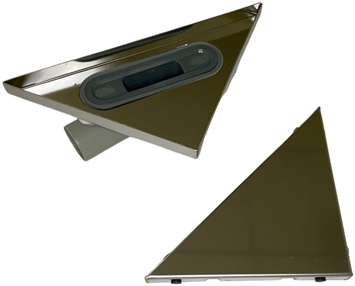 Трап для душу кутовий Mertinoks Triangle Line c гідрозатвором, поворотним сифоном і решіткою «Хвиля»