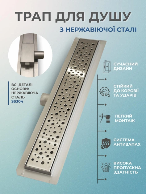 Трап для душу душової кабіни підлоговий лінійний 80см крапля Aqua Link із сифоном антизапах база з високоякісної нержавіючої