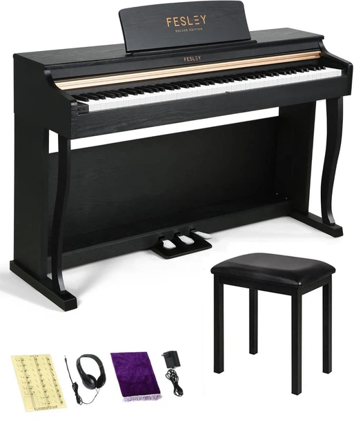 Цифрове піаніно Fesley FEP1000 BK (стійка, стілець, 3 педалі, пюпітр, навушники, чохол). Поліфонія 256 голосів