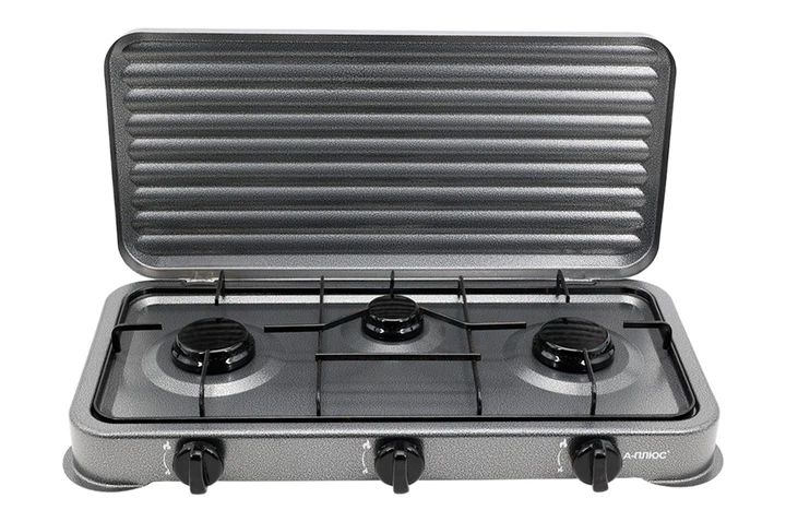 Плита газова настольна на 3 конфорки 580х280х55мм з кришкою эмаль (2107)