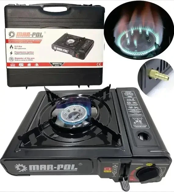 Портативна газова плита MAR-POL із перехідником під великий балон у кейсі 5092491