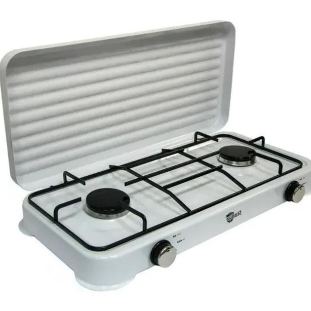 Плита газова побутова настільна двоконфоркова з кришкою SGS-6002 біла