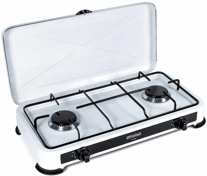Плита газова портативна на 4 конфорки Domotec із сірою кришкою 2200 Вт колір сірий