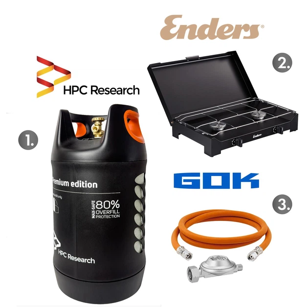 Набір: газова плита Enders Dalgety Black 2 з термодатчиками + балон газовий HPCR, 18,2л з відсікачем