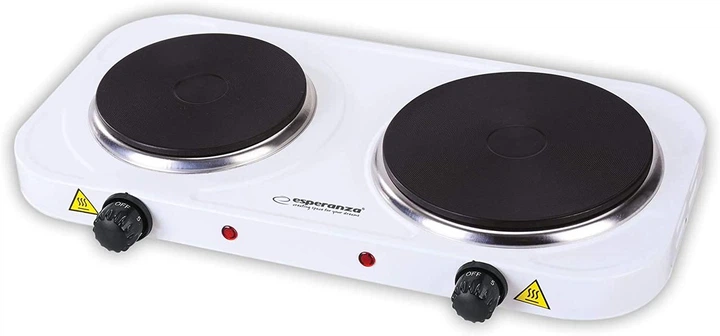 Настільна плита електрична 480x235x70 мм Esperanza 2500 Вт 2 конфорки 155 мм та 188 мм поворотні перемикачі біла
