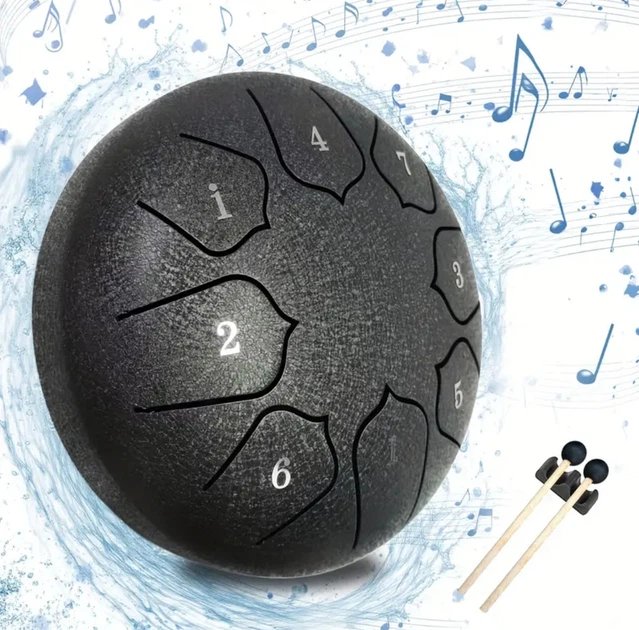 Глюкофон 6" сталевий язиковий барабан + мішечок | Тongue Drum Чорний