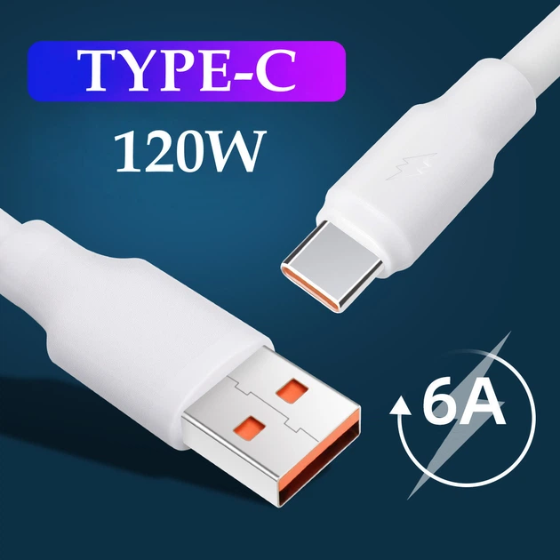 Кабель швидкої зарядки Python USB Type-C 120W 6A White