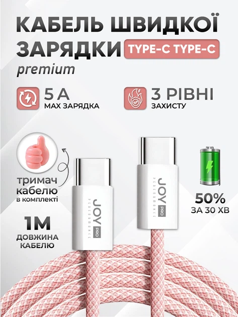 Кабель швидкої зарядки андроід айфон Type-C JoyPro 20W Pink зарядний шнур USB-C 1 метр 5А для смартфонів Apple iPhone Androi