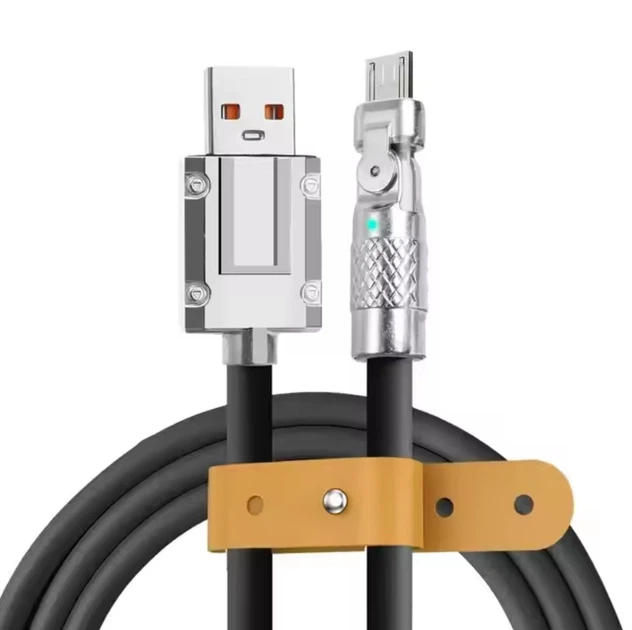 Кабель Для Швидкого Заряджання Usb Type-c 120w 6a 150 См Чорний З Підсвічуванням Поворотний Кабель 180 ° (298799)