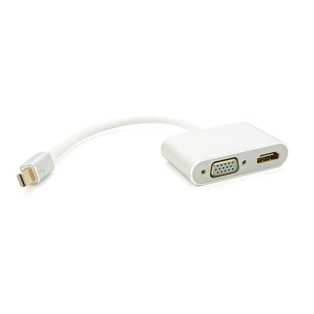 Конвертер mini Display Port (тато) на HDMI/VGA(мама) 30cm, Silver, 4K/2K