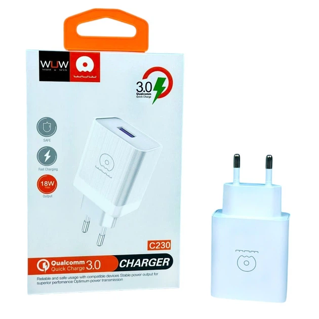 Мережевий зарядний пристрій WUW C195 18W зі швидким заряджанням QC3.0 білий