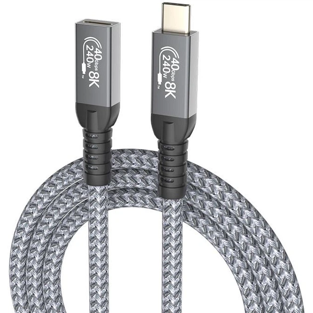Кабель подовжувач Type-C – Type-C USB 4.0 Gen2 PD 240W Thunderbolt 4 0.2 м Сірий