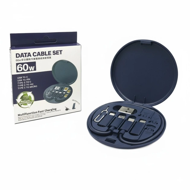 Кабель шнур для заряджання передачі даних XL-722 з кейсом 4в1 60W Синій (28263)