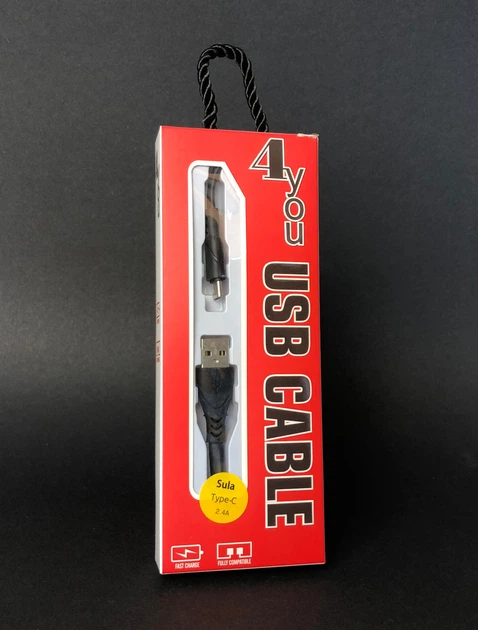 Кабель Usb Type-C 4you Sula black (2.4A, 1м, 1 м, плоский, Silicone)