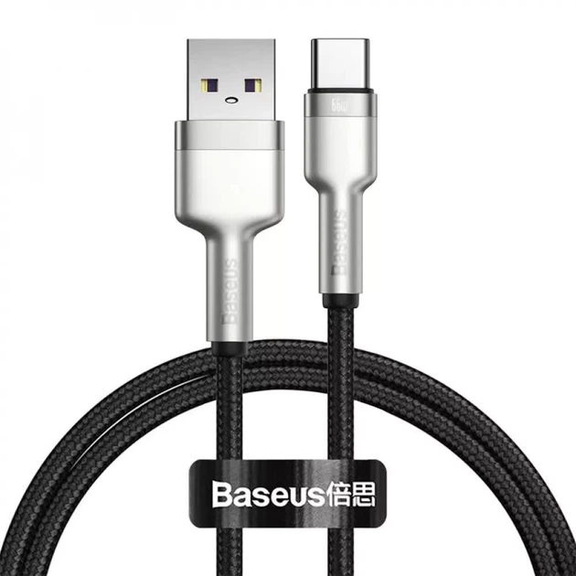 Кабель швидкого заряджання USB-Type-C Baseus Cafule Metal 66W Fast Charging (6A) 1m, чорний (CAKF000101)
