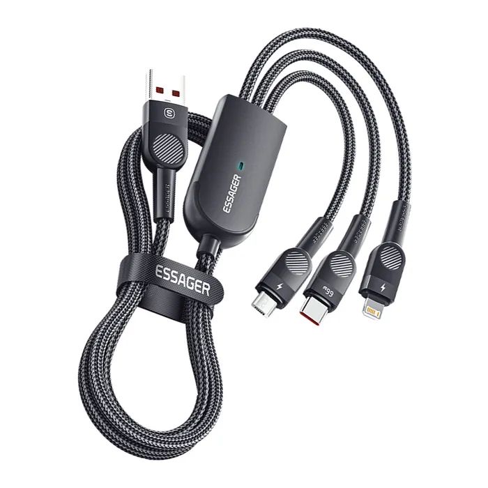 Дата кабель USB 2.0 AM to Lightning + Micro 5P + Type-C 1.2m 66W black Essager (EXCMTL-XJ01) EXCMTL-XJ01